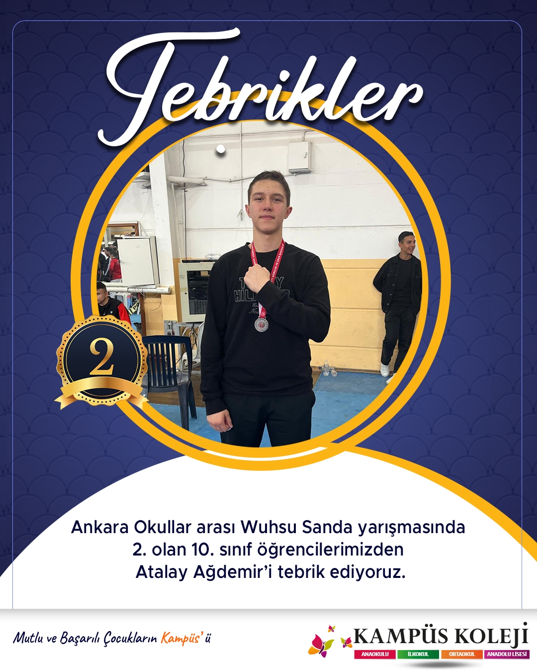 Ankara Okullar arası Wuhsu Sanda yarışmasında 2. olan 10. sınıf öğrencilerimizden Atalay Ağdemir’i tebrik ediyoruz.