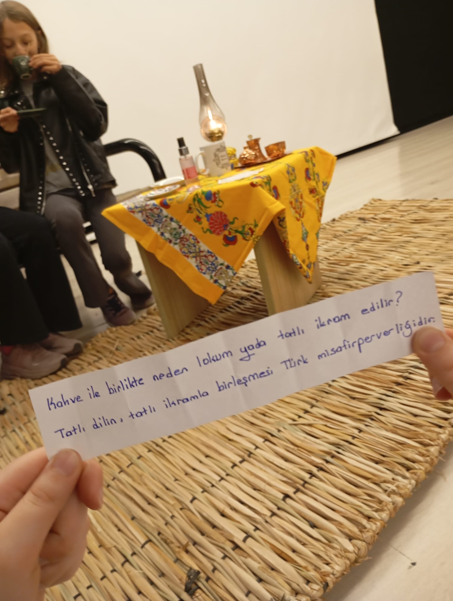 Kültürünü bilen geleceğine emin adımlar atan bir nesil yetiştirmek amacımız. En bilinen ile "Türk Kahvesi" ile hissetmeye çalıştık, atalarımızın inceliğini, naifliğini. Kız isteme, söz kesme, komşu ziyareti, bayram oturması...