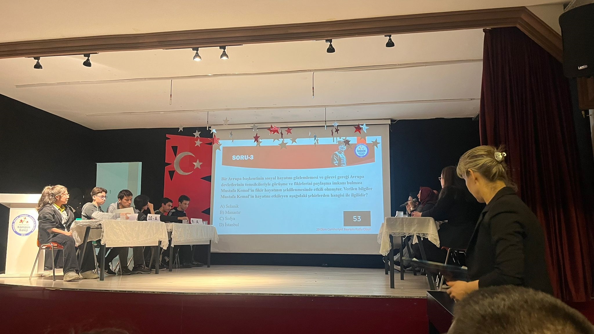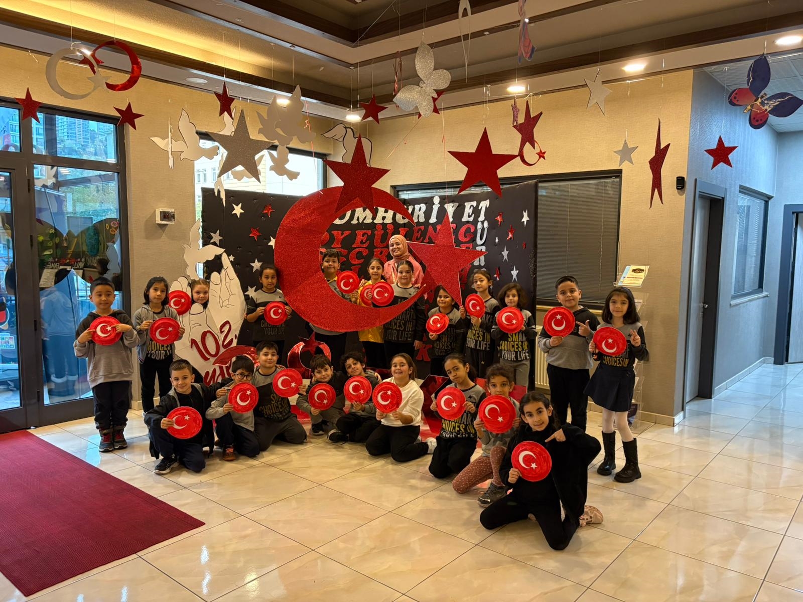 Bugün, özgürlüğümüzün, eşitliğimizin ve bağımsızlığımızın en büyük simgesi olan Cumhuriyetimizin 102. yılını gururla, minnetle ve büyük bir coşkuyla okulumuzda kutluyoruz. Öğretmenlerimizin desteğiyle hazırlanan 29 Ekim Cumhuriyet Bayramı töreni öğrencilerimizin coşkulu ve gururlu performanslarıyla sahneyi doldurdu. Okunan şiirler, söylenen marşlar ve şarkılar, yapılan gösteriler günün şanına yakışır bir biçimde sergilendi.